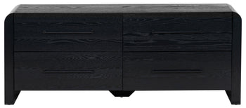 Presenting the Katrina Wood 4 Drawer Dresser, an epitome of sophistication and timeless class in the world of home decor. Crafted in classically black solid rubber wood and dressed in an oak veneer with a touch of black, the dresser promises an immediate stylish makeover to any room it graces. The 4 spacious drawers provide ample storage and easy organization. Enhanced with metallic accents made of reliable Zinc, the dresser gives a nod to ultimate durability and strength. The Katrina Wood 4 Drawer Dresser is not just a piece of furniture, it's a statement in your space, reflecting tasteful choice, unique style and practicality. Add this versatile jewelry to your home today, for an instantly improved look and feel of your space.