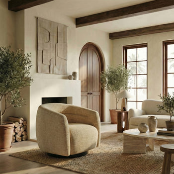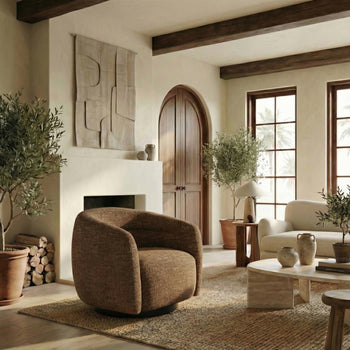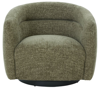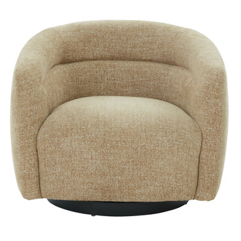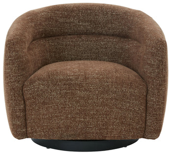 Introducing the Kellybryn chenille swivel chair, a fusion of style and comfort. This versatile piece is crafted with a harmonious blend of wood, fabric, foam, and metal, ensuring both aesthetic appeal and functional utility. The color complements a wide range of interior palettes, bringing warmth and elegance to any room. The chair's swivel feature allows effortless movement, making it a practical choice for living spaces, home offices, or cozy reading nooks. The combination of carefully selected materials offers a supportive and comfortable seating experience perfect for relaxation or productivity. Kellybryn chenille swivel chair stands as a testament to thoughtful design, where every detail, from the sturdiness of the frame to the softness of the fabric, is considered. Embrace the blend of comfort and style with this light brown swivel chair, a perfect addition to enhance your living environment.