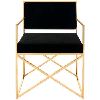 A thoroughly modern iteration of classic campaign style, the black velvet Kian directors chair imbues new elegance and luxury into the straight lined cross base design. Crafted of brass plated steel, the chair seat and back are made from a sensuous cotton blend.