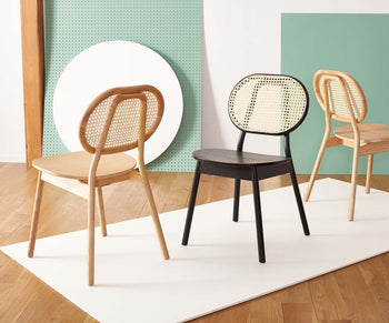 Enliven your dining area with the warmth and grace of our Kristianna dining chair. Blending elegant lines with graceful curves, our dining chair attains a bold and charming presence with its round elliptical back and seat. The back is warmed up with woven rattan to bring a dose of natural textures to your dining area. It is neatly framed within a finished solid ash wood to serve as a refreshing and charming addition to both your casual and formal dining space.