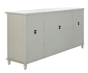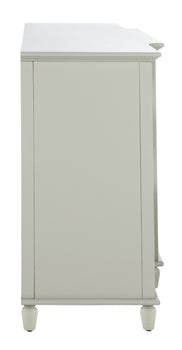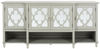 The color offers an airy and modern aesthetic, complementing a variety of decor styles. The mirrored accents not only enhance the visual appeal but also help brighten your space by reflecting light. Thoughtfully designed to balance form and function, this sideboard is an ideal addition for those who appreciate both style and practicality.