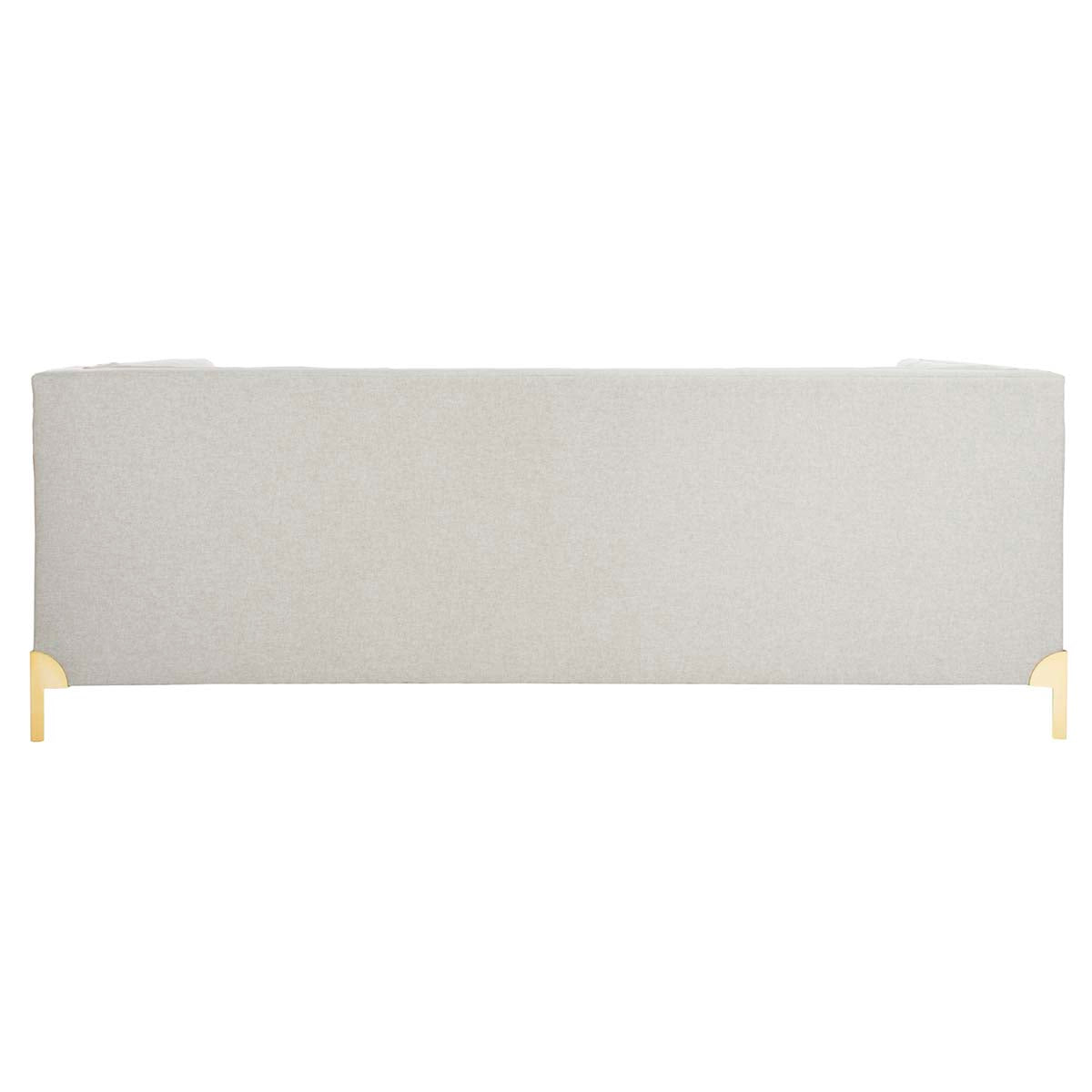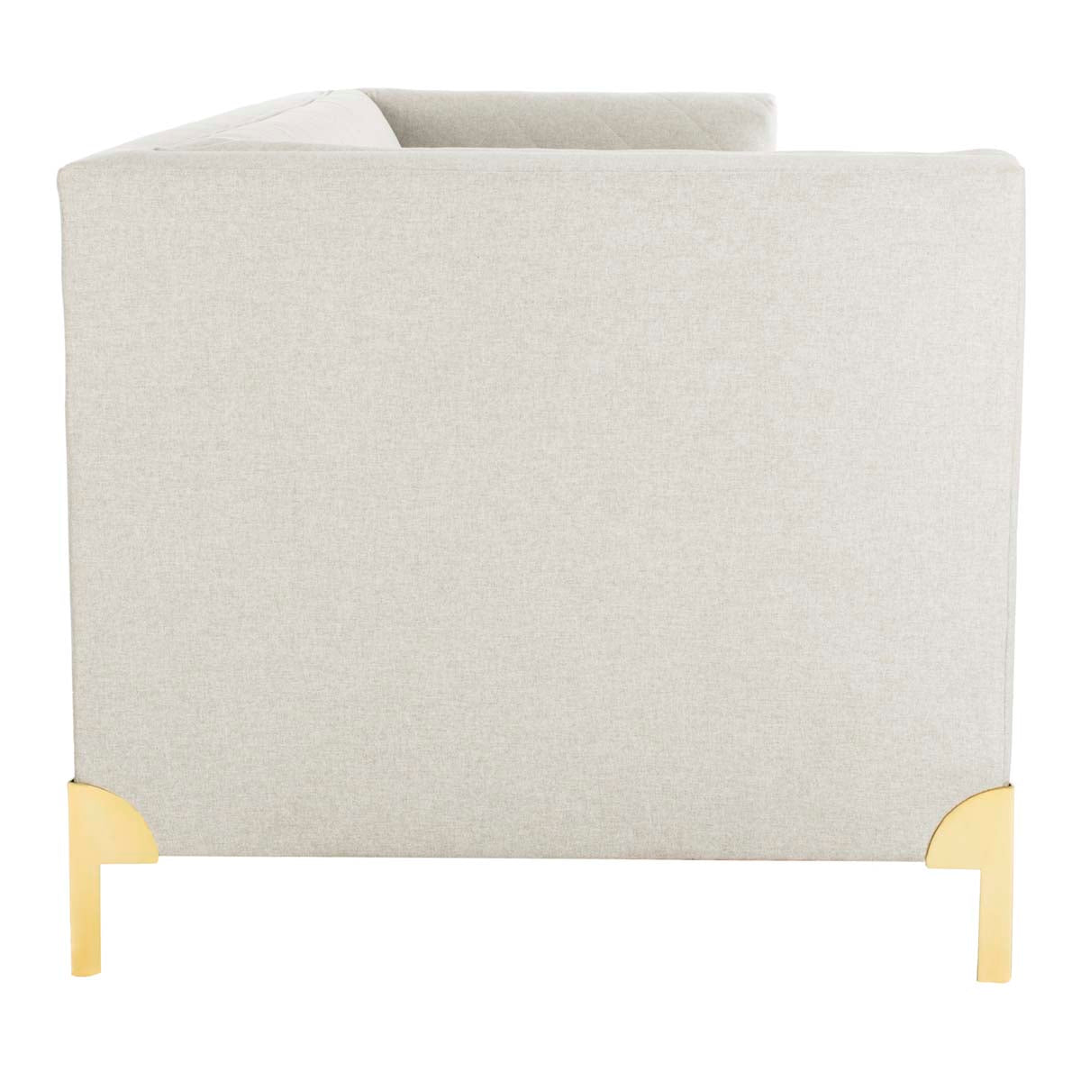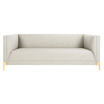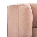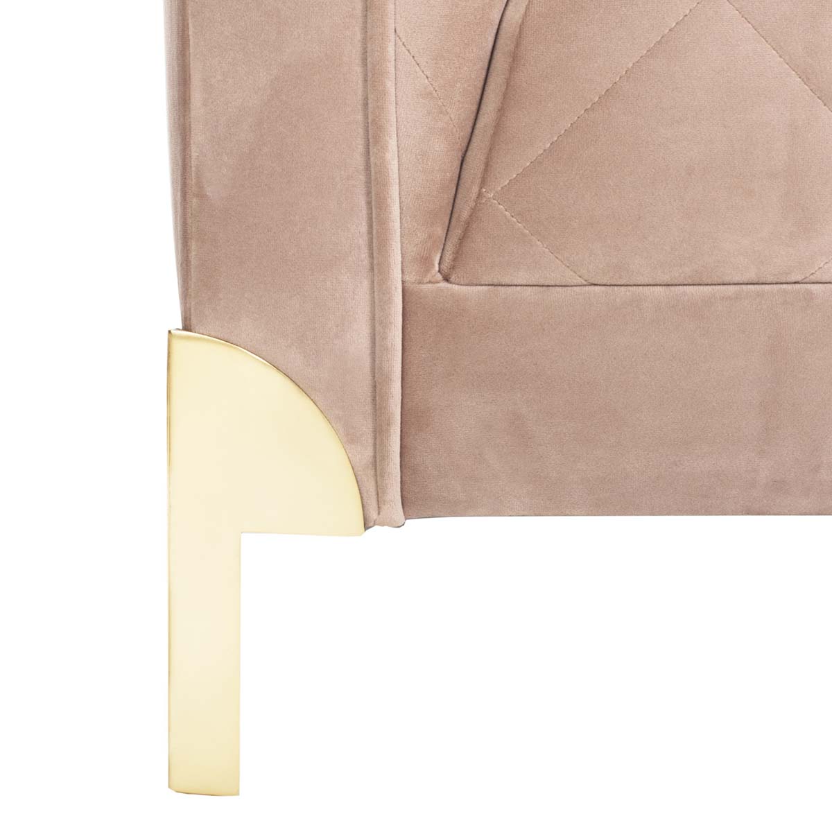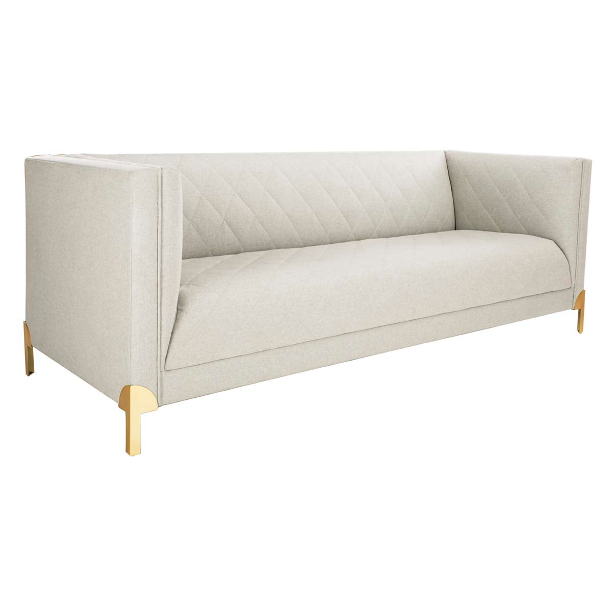 An oasis of serenity, this contemporary diamond trellis sofa brings high style and supreme comfort to the living room. Upholstered in a posh dusty rose hue with a subtle quilted pattern, its rich gold-finished metal legs add shine and dimensionality.