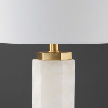 An exercise in exquisite taste, this Lynsey Table Lamp is the perfect finishing touch to any chic decor. Lynsey's handmade white alabaster body abounds with modern glamour, and its gold metal details further enhance its alluring appeal.