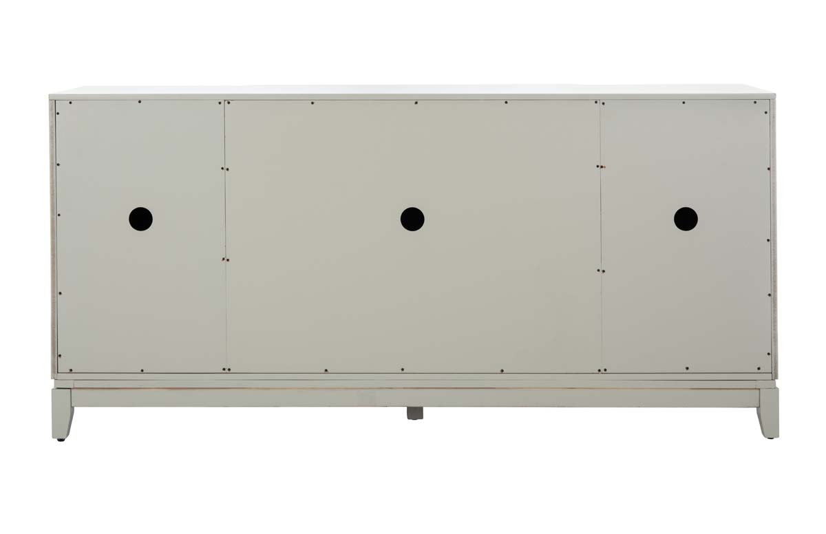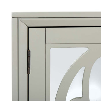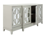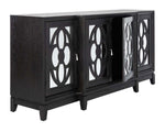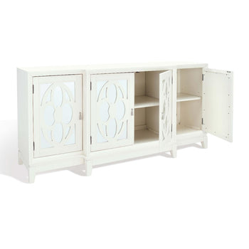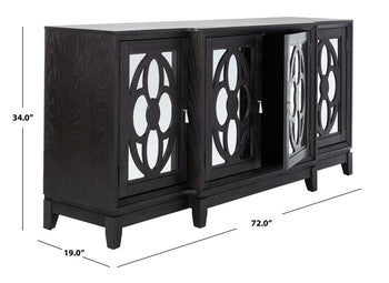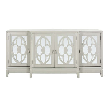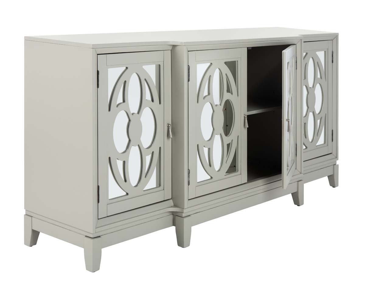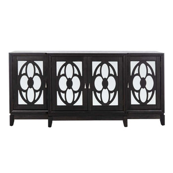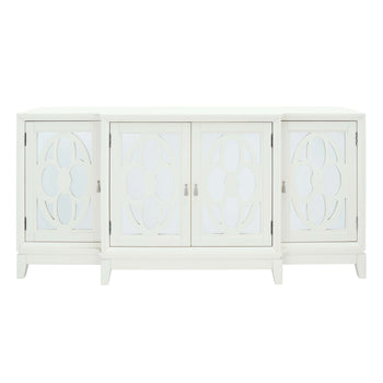 Designed to highlight its fine craftsmanship, this gracious mirrored sideboard is a captivating focal point in any dining room. Ideal for entertaining, its expansive wood cabinets are adorned with chic mirrors ornately framed by a classic cut out pattern.