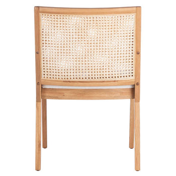 Introduce elegance into your dining space with the Malik rattan dining chair. This natural creation combines the warmth of wood with the textured charm of rattan, offering a stylish and comfortable seating option. The fabric seat cushion adds an inviting touch, ensuring comfort during extended meals and gatherings. Crafted with an eye for detail, this chair complements a variety of dining tables and interior styles. The contrasting colors and natural materials create a striking visual appeal while maintaining a versatile aesthetic. Whether hosting dinner parties or enjoying everyday meals, the Malik rattan dining chair enhances the ambiance of any dining area. This piece embodies simplicity and style, making it a beautiful addition to your home decor. Transform your dining experience with the unique blend of wood, rattan, and fabric in perfect harmony.