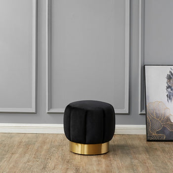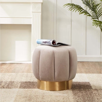 Gracious and charming, this petite Maxine Ottoman makes a grand statement in any living room. Designed to highlight the meticulous channel tufting on its plush velvet upholstery, its glamorous gold finish gives makes Maxine a classic beauty.