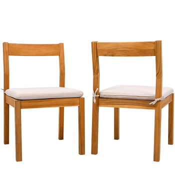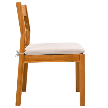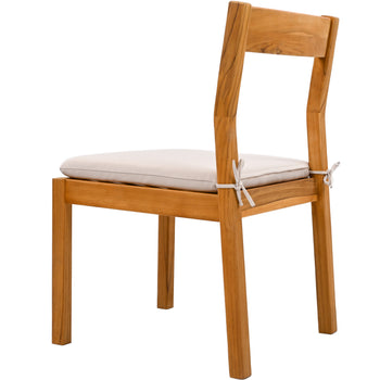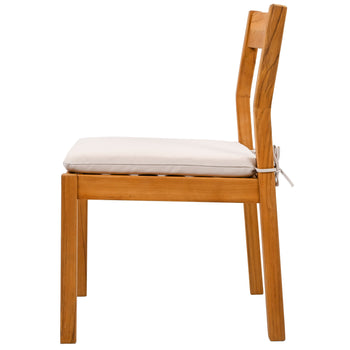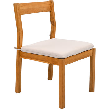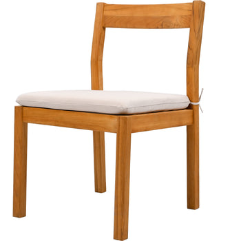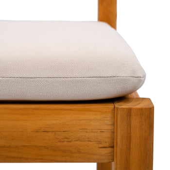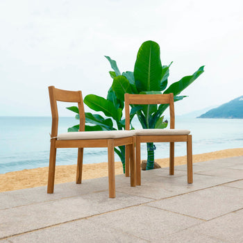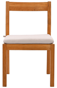 Relish the blend of tropical sophistication and eco-friendly design with the alluring Mayaguana Brazilian Teak Dining Chair. This outdoor dining chair, appealingly crafted from authentic Brazilian Teak wood, enlivens your space while ensuring sturdiness and strength. Endurance and durability are synonymous with this type of wood, offering you absolute peace of mind. The chair's natural finish reveals the wood's inherent beauty, while the white fabric of the cushions offers a chic contrast. This visually striking feature enhances its organic appeal and contemporary silhouette. The cushions of the Mayaguana chair utilize olefin-free fabric, known for its lightweight nature and durability. This fabric is stain, fade, and mildew-resistant, making it an astute choice for outdoor furniture. It ensures that the chair remains fresh and bright even when exposed to adverse weather conditions. Relax and dine outdoors with this smart and stylish Mayaguana Brazilian Teak Dining Chair. The seamless blend of practicality, sustainability, and elegant design creates a stunning aesthetic that will elevate your outdoor living space. Experience the glory of meticulous craftsmanship and an eco-conscious design with the Mayaguana Brazilian Teak Dining Chair.