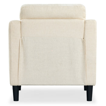 Introducing our Nathaniel Tufted Back Accent Chair in Cream. This stunning piece effortlessly marries style and comfort, making it an ideal addition to your living space, study, or bedroom. Adorned with a sophisticated tufted back and standing tall on sturdy legs, this chair adds an undeniable charm to any room. Upholstered in chic cream-colored fabric, it injects a soothing ambiance and a dash of elegance to your decor. Fabricated from 100% polyester, it is built for durability and easy maintenance, offering you a hassle-free experience. With the Nathaniel Accent Chair in your space, you are not just investing in a piece of furniture, but a style statement that is wonderfully remarkable in its simplicity. Transform your living space with the Nathaniel Accent Chair in Cream, where style meets comfort at its best. Your space deserves nothing less than this delightful piece of art.