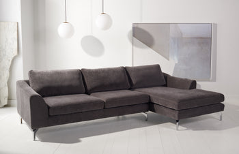 Introducing the Nicholsen modern sofa left or right facing in a chic anthracite hue. This stunning piece combines modern elegance with comfort, transforming any living space into a cozy retreat. Crafted with attention to detail, this sofa is upholstered in sumptuous velvet made of 100 percent polyester, offering a soft and inviting seating experience.