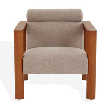 Introducing the Nikolas Boucle Accent Chair, thoughtfully designed to blend effortlessly into any decor style. This accent chair, elegantly furnished in a light brown and natural boucle fabric, is a standout addition to your living space. The rich hue of the fabric complements the solid oak wood and plywood construction, creating a cohesive and warm aesthetic. The sophisticated and comfortable design offers an understated luxury, making it a stylish choice for your home. This accent chair is not only striking but also designed with meticulous attention to detail. If you are looking for a statement piece that subtly pronounces elegance without compromising on comfort, the Nikolas Boucle Accent Chair is your best match. Elevate your space with this stylish and inviting piece.