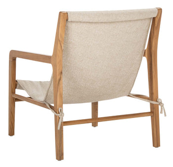 Bring the beachside resort home with this Osmond Sling Chair. Osmond's open finely carved natural teak frame emanates breezy coastal vibes, and the relaxed silhouette of its soft sand linen seat further enhances Osmond's soothing tropical ambiance.