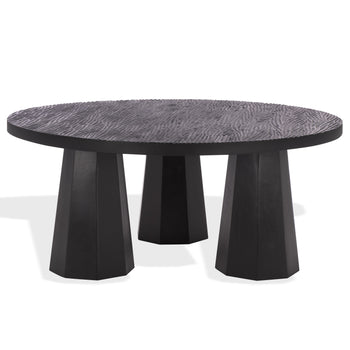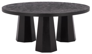 Introducing the Petraclara Wood 3 Leg Coffee Table in Black a stunning addition to elevate any living space. With its sleek design and bold color, this coffee table makes a striking statement in your home. Crafted from wood, its natural charm brings warmth and character to your decor while its three-leg design offers a unique and modern twist.