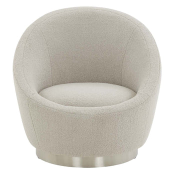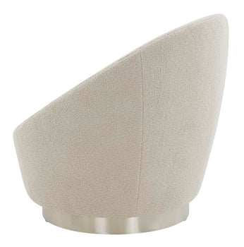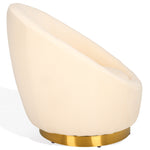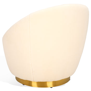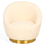 This Pippa Swivel Chair entices the senses with rich textures and enveloping silhouette. Pippa's ivory faux lamb wool is divinely plush to the touch, perfectly paired with a sleek gold swivel base that elevates the decorative aesthetic of any room.