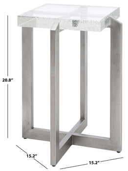Bring Striking Elegance And Drama To Your Home With A Pixie Square Accent Table. The Thick And Deep Bubble Glass Top Instantly Captures The Eye. It Embraces A Blue Sheen And Seamlessly Flowing Bubbles To Create A Water Effect. The Cool And Refreshing Vibe Of The Square Tabletop Is Balanced With The Warmth Of Gold Finished Legs. Bringing Together Contradicting Elements In A Sleek And Stunning Design, Our Accent Table Serves As A Bold And Striking Feature In Any Setting.