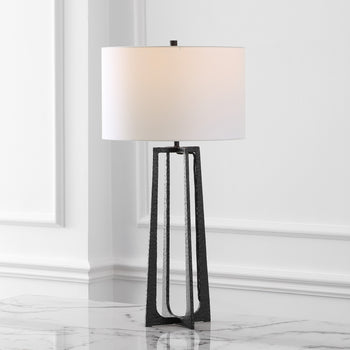 Introducing the Pollyanna Metal Base Table Lamp! Handcrafted with an exquisite iron stand, this lamp promises an uncompromising blend of durability and sophistication. The robust black metal structure endows it with an imposing presence that is bound to become the focal point of your place.
