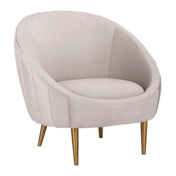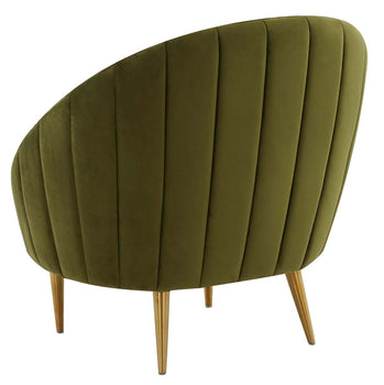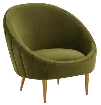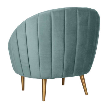 A modern update of a classic, the Razia Tub Chair is brimming with sophistication. Artfully crafted in smooth, sea foam velvet and shimmering gold legs, this chair makes an elegant statement in any living room.