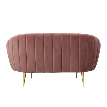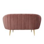 A contemporary reinterpretation of the classic tub chair, this Razia Loveseat seamlessly blends retro chic design with today's eclectic style. Razia's sleek silhouette is highlighted by channel tufted details on its luxurious dusty rose velvet, while gold finished legs exudes effortless elegance.