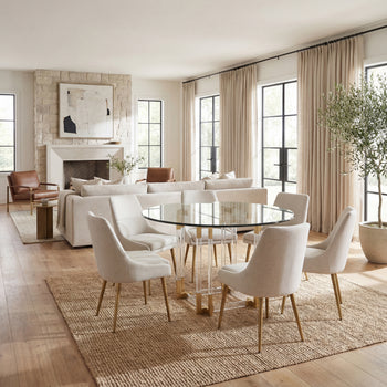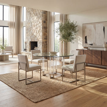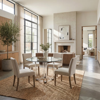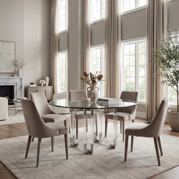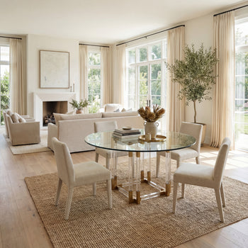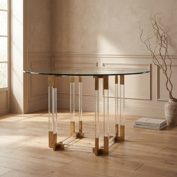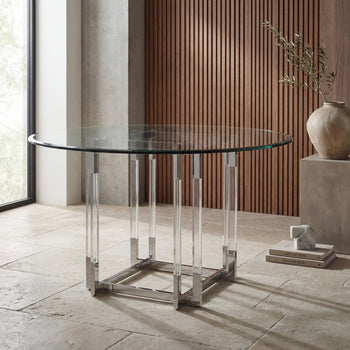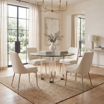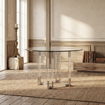 The table's diameter makes it perfect for intimate gatherings or cozy family meals. Whether hosting a dinner party or a casual breakfast, the Reiner table offers versatility in any setting. Its minimalist yet striking design ensures it will effortlessly become the centerpiece of your dining area. Create memorable moments around the Reiner acrylic dining table and watch as it transforms the everyday into the extraordinary. Unlock the potential of your dining experience with this masterful blend of material and design.