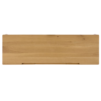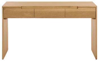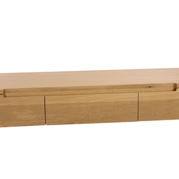 Transform your living space with the understated elegance of the Riverside oak wood 3 drawer console table. Crafted in natural oak, this piece exudes a warm and inviting charm that effortlessly complements a variety of interior styles. The graceful blend of oak wood, oak veneer, and manufactured wood offers a sturdy yet sophisticated touch, making it a versatile addition to any room.