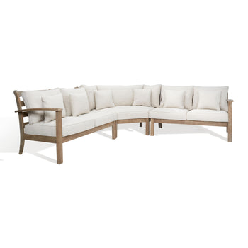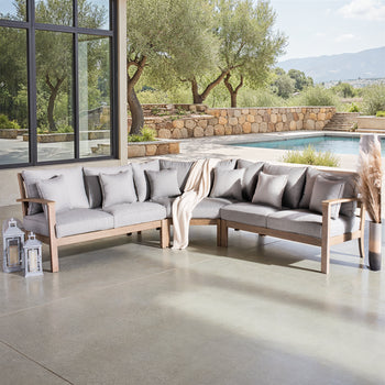 The natural wood finish adds a touch of warmth, while the light fabric provides a neutral backdrop that seamlessly blends with various outdoor decor styles. Whether entertaining guests or enjoying a quiet moment by yourself, this sectional sofa enhances your patio experience with its thoughtful design.