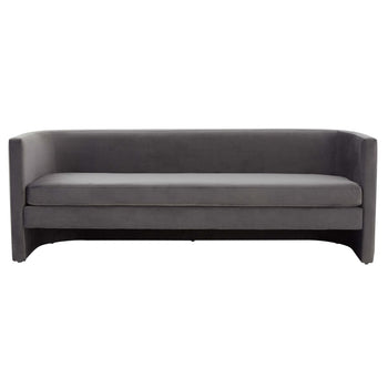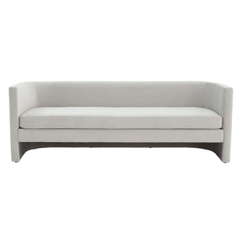 A modern take on Old Hollywood glamour, this Rosabeth Sofa punctuates any room with distinct couturier chic. Ideal for today's cosmopolitan interiors, Rosabeth's plush light grey velvet is simply luxurious, perfectly spotlighting its curved wraparound silhouette and eye-catching open base.