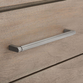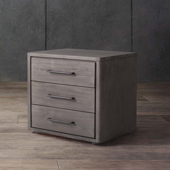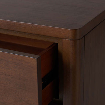 This outstanding Rosey Nightstand is at once elegant and discrete, making it ideal for today's classic-contemporary bedrooms. Rosey's three drawers in warm brown mahogany provide ample bedside storage, and antiqued brass bar pulls add a couturier touch.