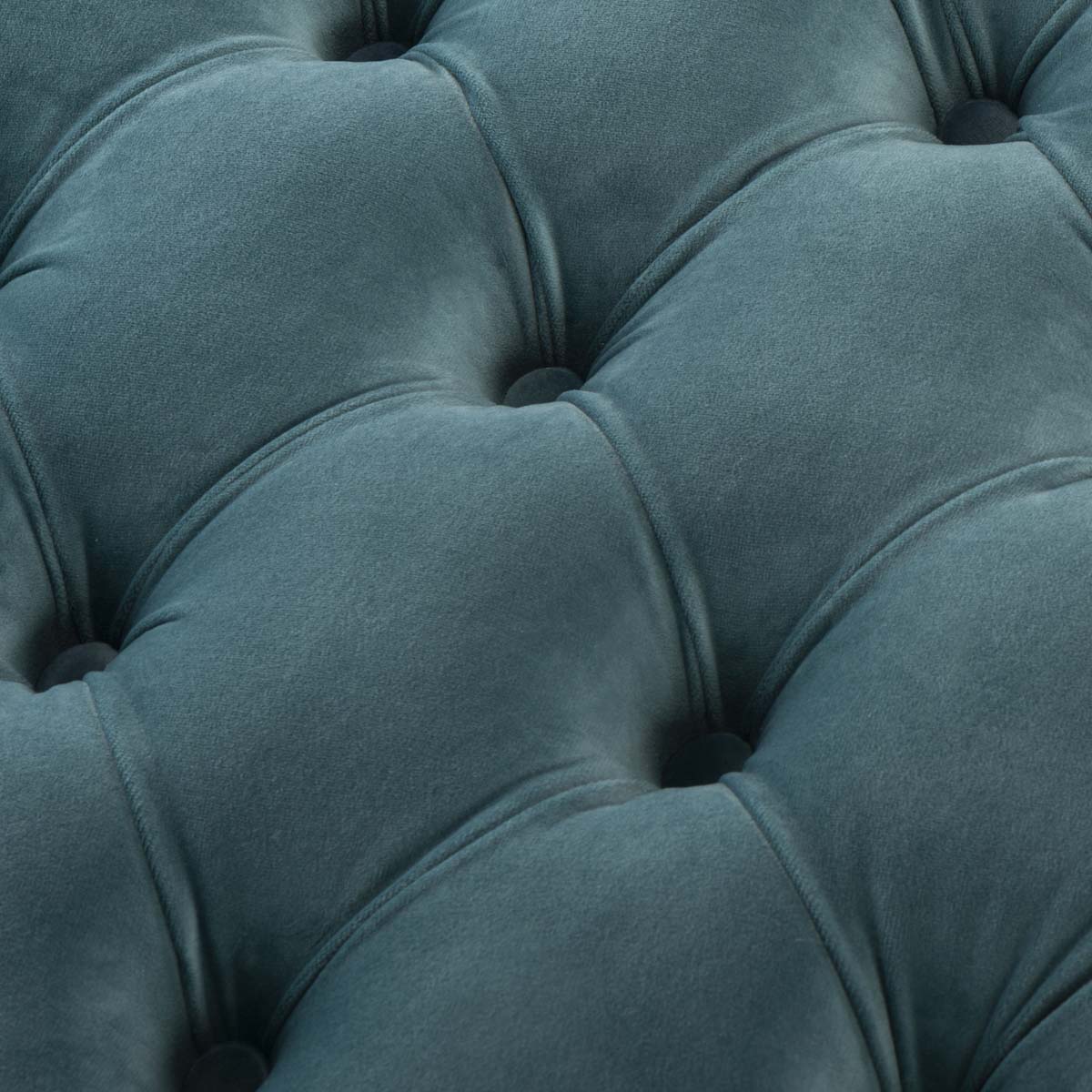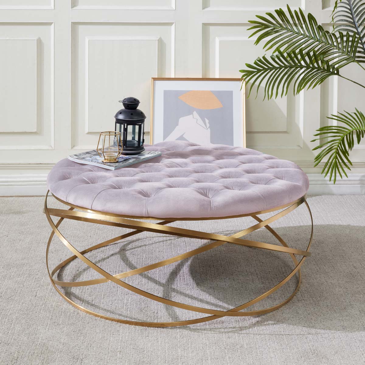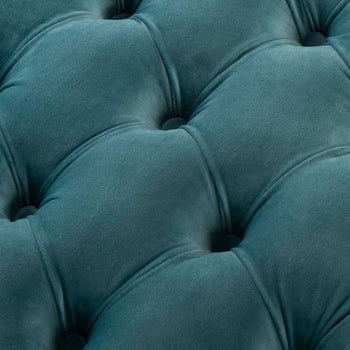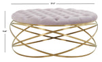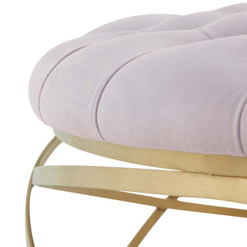 The focal point in any sophisticated interior, this contemporary velvet tufted ottoman is a timeless investment. Its classic navy hue and sculptural gold legs add artistic flair to the modern living room or bedroom.