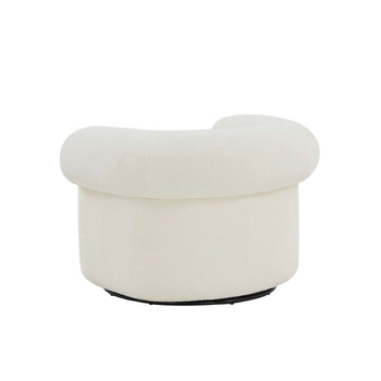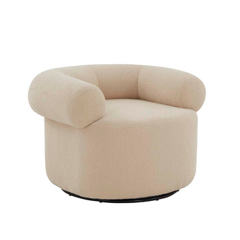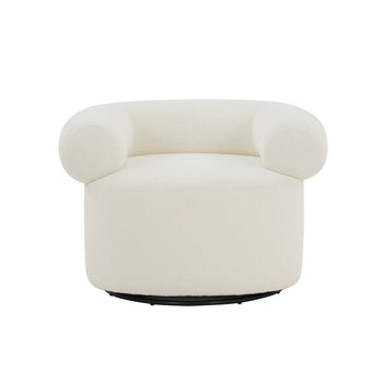 Uplift your home with the cozy and playful vibes of the Sadie accent chair. Our plush, drum-style chair impresses with its bold and striking silhouette. A curved and generously cushioned back adds a layer of comfort. It is fully upholstered in faux shearling to attain irresistible textures and a fun, casual vibe. Our accent chair remains petite enough to complement cozy nooks and tight space. The chair swivels 360 degrees to follow conversations or attain a sweeping view of the room.
