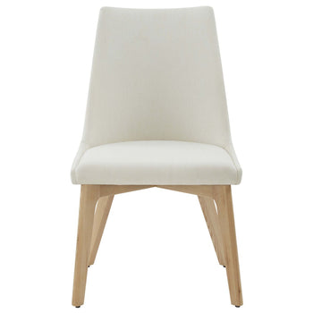 Enliven your home with the inviting grace and sophistication of our Sandralynn dining chair. The back subtly curves to invite you for a comfortable stay. The minimal and streamlined profile of the dining chair features a generously padded back and seat. It is perched upon tapered pinewood legs to harmonize and uplift your dining area. Upholstered in high-quality linen in an elegant ivory shade, our dining chair is sure to serve as a comfy and versatile addition to your home.
