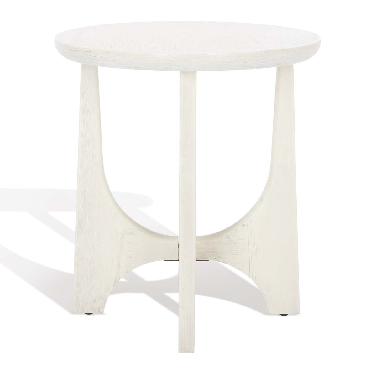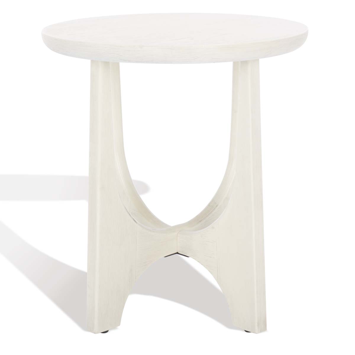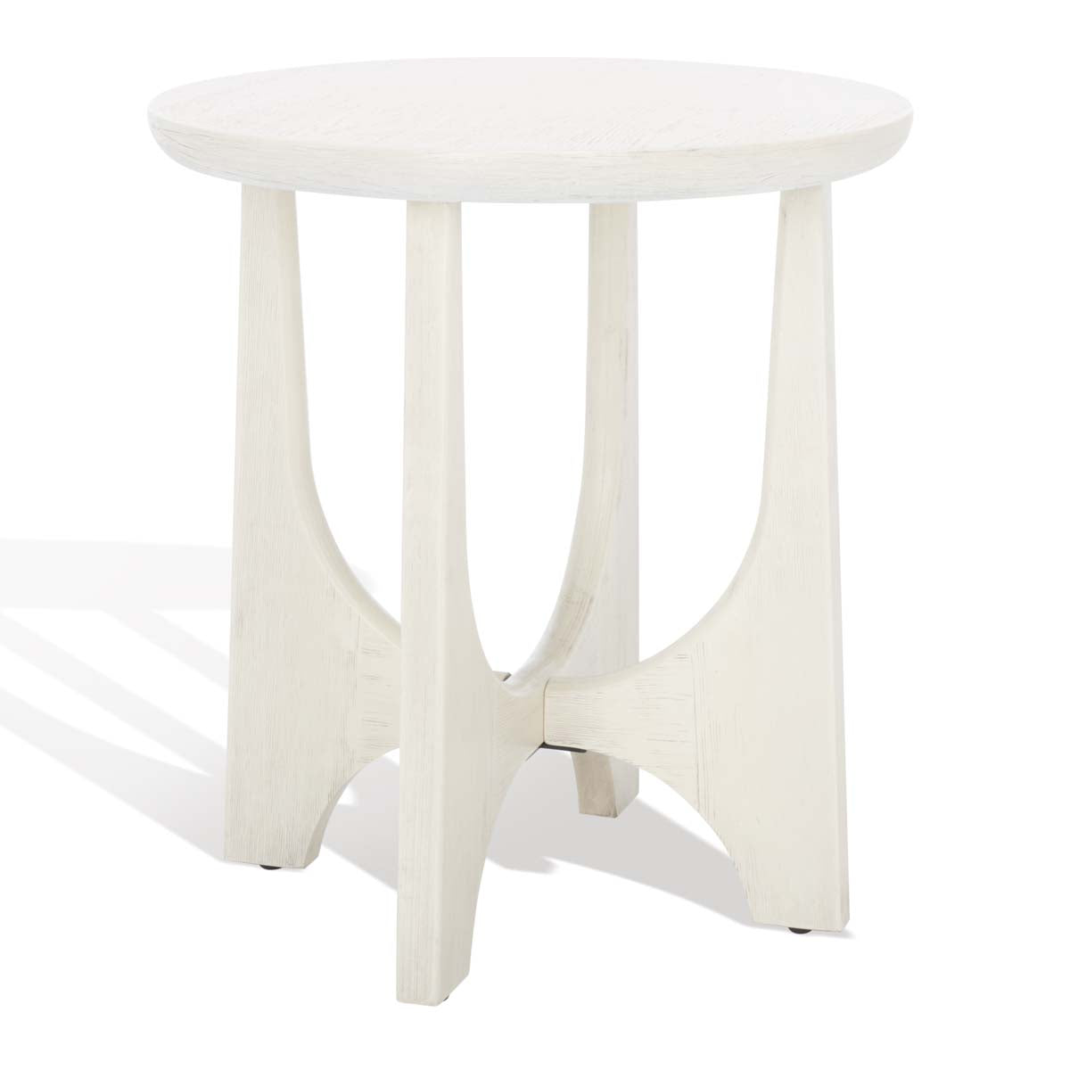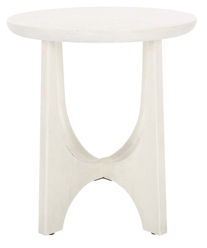 Reimagining retro, this Sasha Accent Table is simply sensational. Hints of Mid-Century charm emanate from the finely sculpted curves of Sasha's trestle base, and a whitewash finish seamlessly accents any room's color scheme.