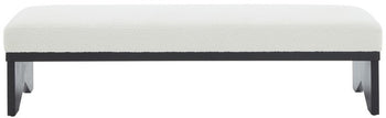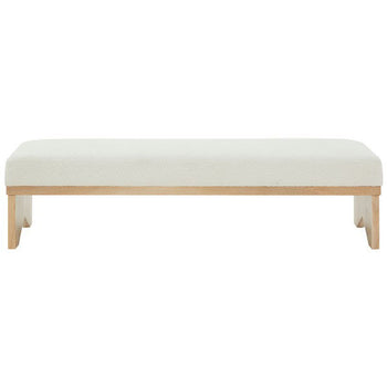Uplift your home with the modern charm and elegance of our Sharyn bench. Showcasing a streamlined profile and elegant mix of materials, our bench remains an endlessly versatile and charming addition. Its crisp profile is softened with a generously cushioned seat. Its slim ashwood legs lend an inviting textural appeal. The legs feature a cut-out to accentuate the airy and refined profile of our bench. Upholstered in rich textures of ivory-colored boucle, our bench provides an easy and comfy place to land in your living space, bedroom or entryway.