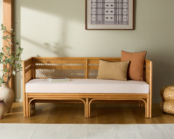 Transform your living space into a haven of style and comfort with the Shawnee Rattan Loveseat in Natural White. Its elegant design seamlessly blends with any decor, adding a touch of sophistication to any room. Made with 60% wood, this loveseat showcases a sturdy frame that's both eco-friendly and visually appealing. The natural materials are complemented by a soft 20% fabric cover, offering a cozy feel that's perfect for unwinding after a long day. A generous 20% foam filling provides just the right amount of support for relaxation. Whether you place it in your living room, sunroom, or covered patio, the Shawnee Rattan Loveseat is sure to be a centerpiece of conversation and comfort. With its warm tones and inviting design, it beckons you to sit back, relax, and enjoy moments of serenity. Discover a blend of nature-inspired charm and everyday practicality with this must-have addition to your home.