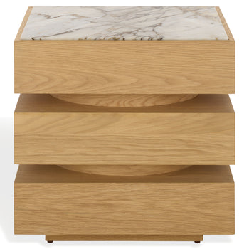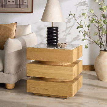 Introducing the Shayrina marble and oak wood accent table, a blend of natural beauty and modern elegance. With its captivating combination of wood and pristine marble, this table is designed to enhance any living space. The wood base offers a subtle, earthy charm, while the marble top adds a touch of sophistication. Perfect for a variety of settings, from cozy living rooms to stylish foyers, this accent table serves as a versatile piece that complements both classic and contemporary decor. Whether you are enjoying a quiet cup of coffee or showcasing your favorite decor items, the Shayrina table provides a timeless and elegant platform. Its sturdy construction ensures that it remains a central piece in your home. Add a touch of refinement to your interior with the Shayrina marble and oak wood accent table, where natural tones meet the elegance of marble for a stunning and approachable look. Transform your space with this beautifully crafted piece.