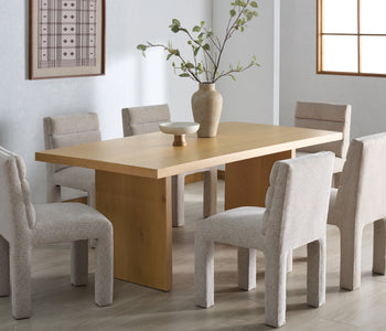 Introducing the shelbee wood rectangle dining table in natural ceruse. This piece effortlessly combines timeless design with the inherent beauty of natural cerused oak. Crafted entirely from wood, its elegant simplicity complements diverse decor styles, serving as a stunning centerpiece. The subtle tones invite warmth and sophistication into any dining space, creating an inviting atmosphere for gatherings. Experience the art of dining with a table that offers both functionality and visual appeal. Make your mealtimes memorable with the shelbee wood dining table a perfect blend of style and grace for your home.