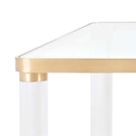 Haute design. Inspired by lots at the legendary Yves St. Laurent auction, the Suzanna Coffee Table revels in the good life. Acrylic, brass and glass recreate the glam seventies style espoused by the original jetsetters. Cocktail glasses not included.