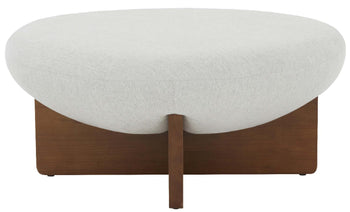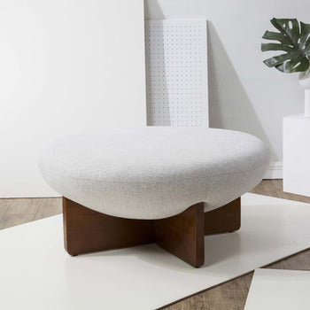 Add a sleek and sculptural detail to your home with Tailor ottoman. Its round seat gracefully curves at the bottom to present a bold and sensuous silhouette. The seat is perched upon a cross-ash wood base, standing out with its rich organic grains. Both fashionable and functional, the ottoman is adorned in a tasteful taupe color to become a welcoming addition to your living area. Our ottoman serves as a petite coffee table or a comfy seat for your guest.