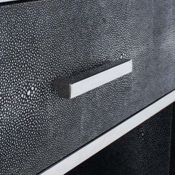 Exotic textures take center stage in the Tammy Faux Shagreen Nightstand. Tammy overflows with high rise personality, with a slim drawer for stylish stowing and a spacious bottom shelf for displaying your finery.