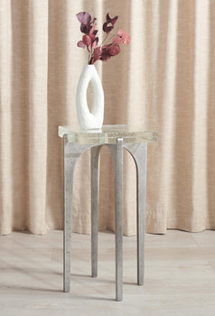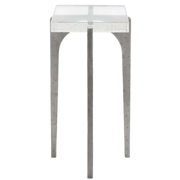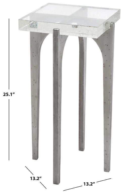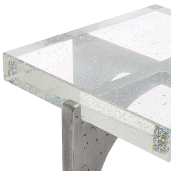 Add A Striking And Refreshing Design Element To Your Home With Our Tawny Square Accent Table. Our Sleek And Stylish Table Stands Out With A Square Bubble Glass Tabletop. Featuring A Blue Sheen And Seamlessly Flowing Bubbles, The Tabletop Creates A Water Effect To Refresh Your Space. It Is Complemented By The Cool And Lavish Vibes Of Silver Metallic Legs. The Sleek Legs Present An Elegant Arch At The Top To Make Our Accent Table A True Statement Piece.