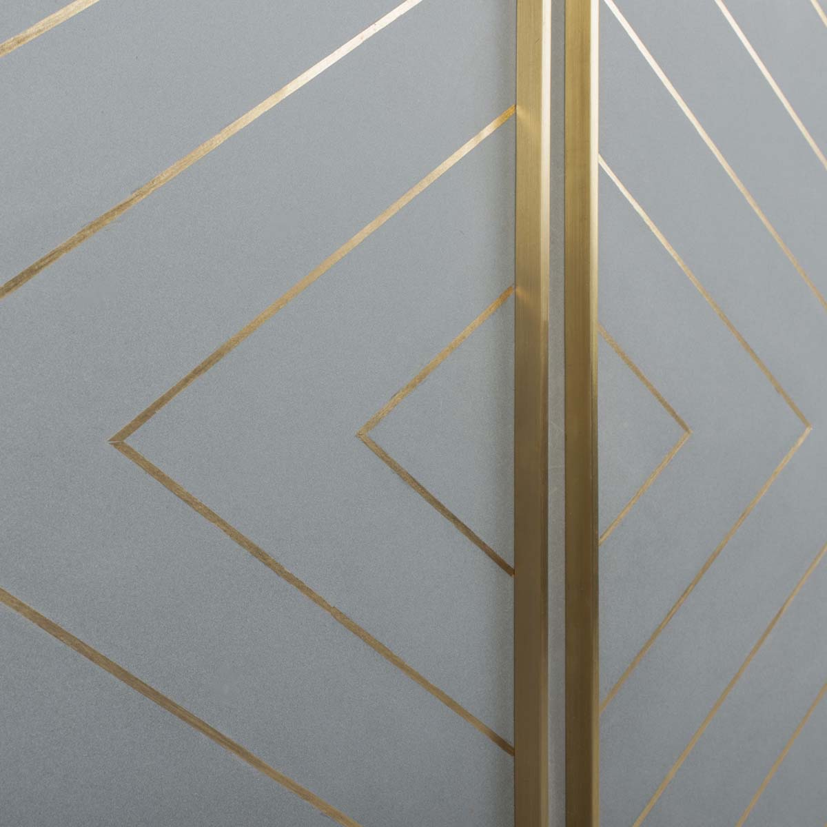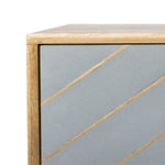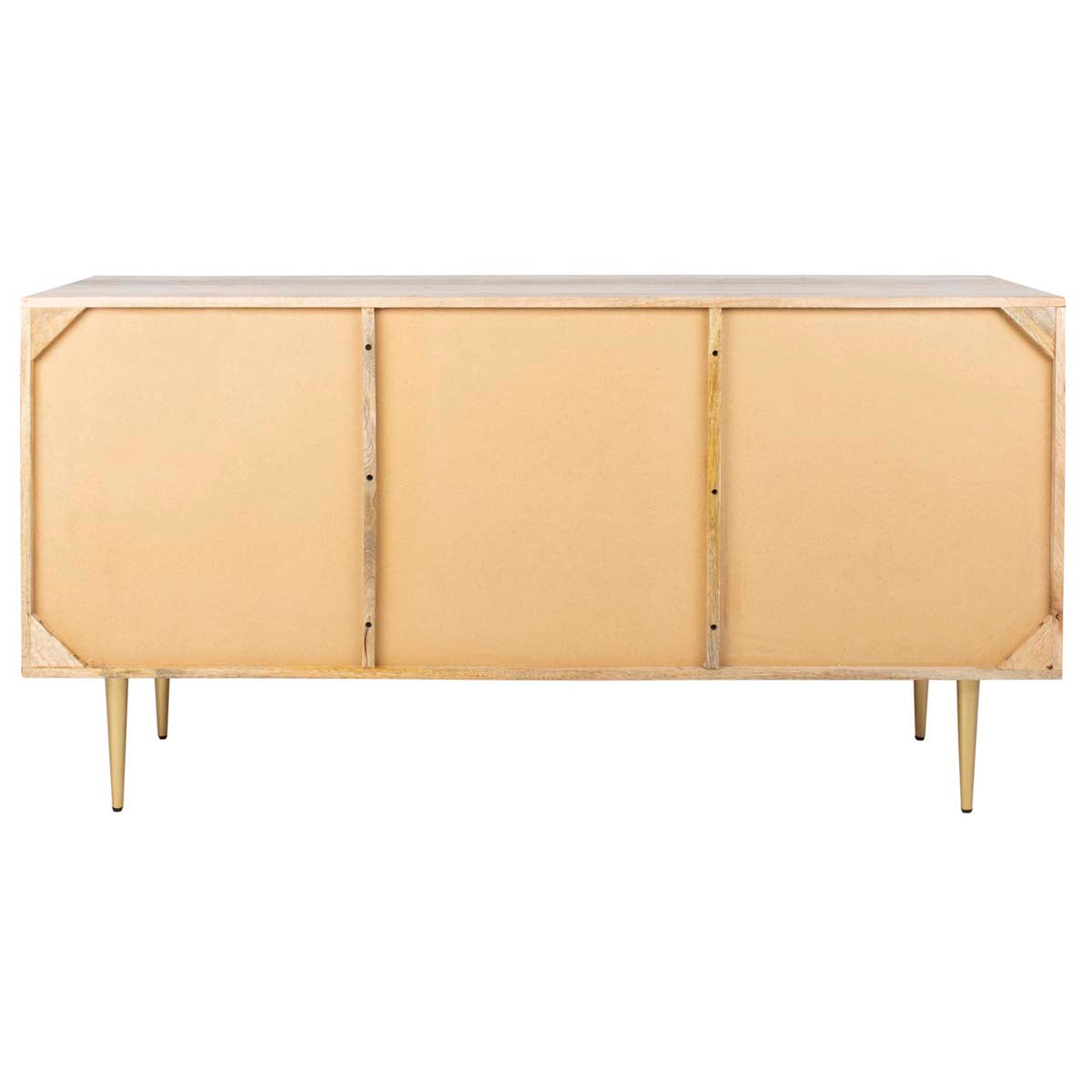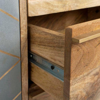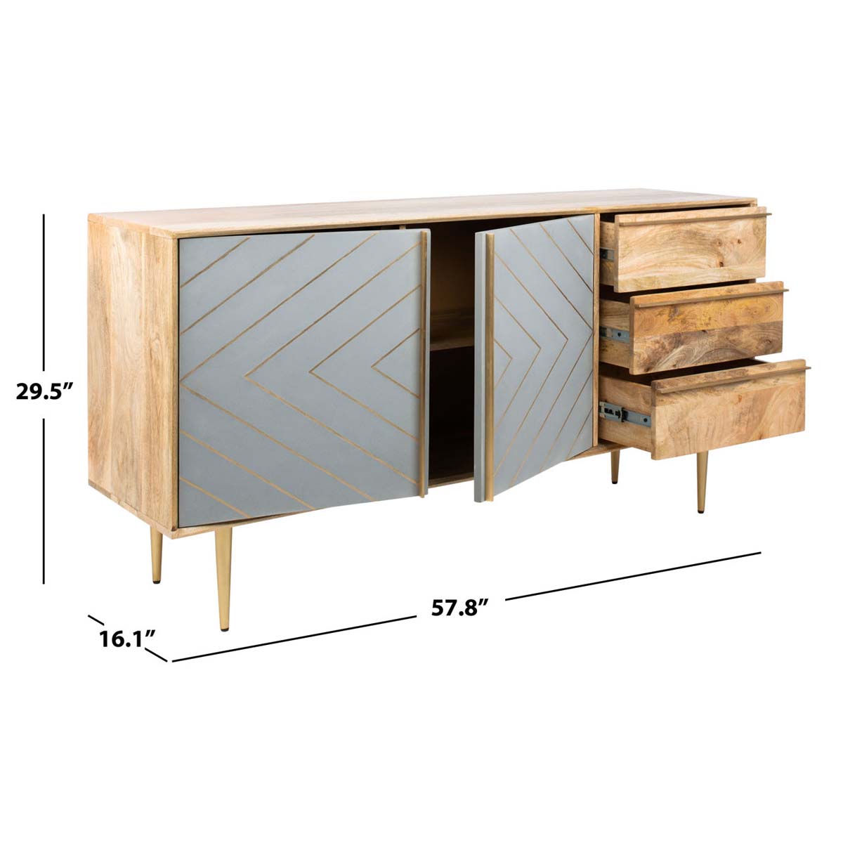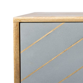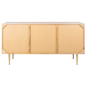 Inspired by vintage style, this contemporary gold inlayed cement sideboard is a new spin on the classic buffet. This bold update features a beautiful natural finish and a geometric design created with cement and inlaid brass. Its legs add retro flair.