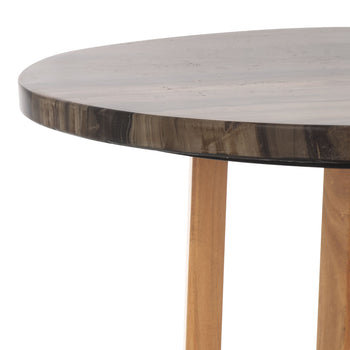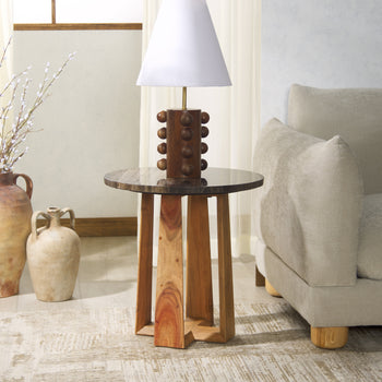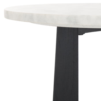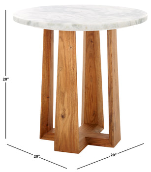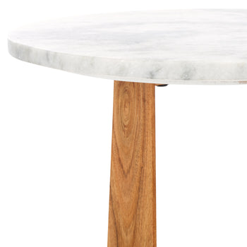 Update any corner with the modern charm and grace of our Trenton round accent table. Mixed-material elegance lends polished contrast and elegance to our streamlined accent table. The thick, tapered legs of the table gracefully intersect to attain an eye-catching presence. Its round tabletop showcases the natural veining of white marble. It is complemented with the rich tonal variation and organic textures of Acacia wood. Creating a beautiful harmony of textures, our accent table adds visual character and charm to your favorite sofa or armchair.