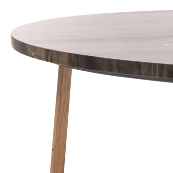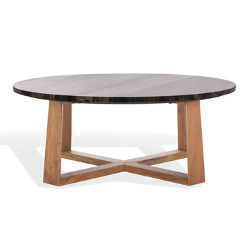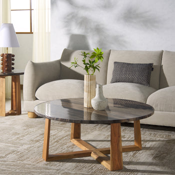 Refresh your space with the modern charm and organic appeal of our Trenton coffee table. Mixed-material elegance lends polished contrast and elegance to our streamlined coffee table. The thick, tapered legs of the table gracefully intersect to attain an eye-catching presence. Its round tabletop showcases the natural veining of white marble. It is complemented with the rich tonal variation and organic textures of Acacia wood. Creating a beautiful harmony of textures, our coffee table attains a room-brightening appeal in your living space, bedroom, or home office.