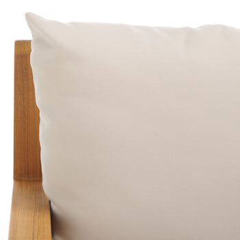 Introducing the awe-inspiring Trinidad Brazilian Teak Patio Chair: a brilliant way of enhancing your outdoor spaces, blending natural and white colors for a subtly sophisticated look. This patio chair is crafted from the incredibly robust Brazilian Teak Wood. The primal charm of the wood combined with its indisputable strength makes this chair a durable addition to any exterior setting. It is adorned with fabric made from the amazing Olefin material, known for its comfort and dependable weather resistance. All these superior features converge in the Trinidad Brazilian Teak Patio Chair, ensuring an impressive blend of function and style to uplift your outdoor relaxation moments. It's time to transform your outdoor space into a serene sanctuary with this intriguing patio chair.