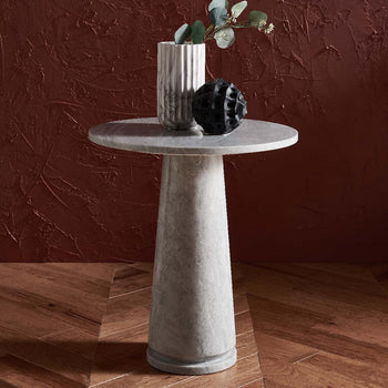 Elevate your home with the sculptural beauty of the Valentia Tall Round Accent Table. The round profile of the table is juxtaposed against the solidarity and hardiness of marble. Crafted entirely in real marble, the table stands upon a refined and sculptural pedestal.
