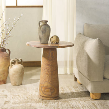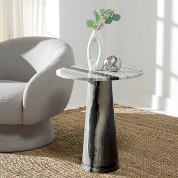 Both alluring and visually dynamic, our accent table celebrates the natural veining and tonal variations of marble. It stands tall and graceful to serve as a statement piece in any corner of your home.