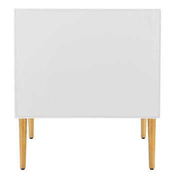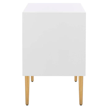 This deluxe 3 drawer Beetlewood side table is a natural choice for the well appointed living room. Perched on sleek, modern brass legs, it's framed by bright white lacquer for a contemporary touch.