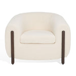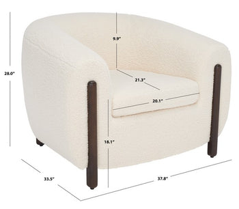 Make a powerful statement with the cozy and sculptural presence of Westley accent chair. It exaggerates the proportions of a classic tub chair to deliver a statement piece for your home. A round and plush barrel back snuggles into the cuddly and dramatic silhouette. The chair is further warmed up by sleek ash wood legs that beautifully accent its chunky arms. Well-suited to being the center of attraction, our accent chair is upholstered with rich textures of faux shearling in a classy ivory color, serving as the perfect spot to nestle in.