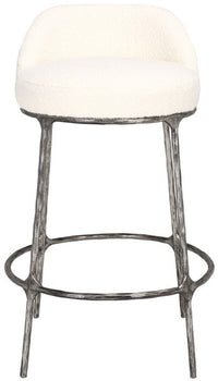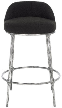 Bring refined style and comfort to your high dining areas with our Woodsen counter stool. Our sleek and airy stool showcases mixed material elegance to offer a stylish upgrade to your home. The back is gracefully curved and padded to ensure a comfortable stay. Its plush round seat strikes a beautiful contrast with the slender black metallic legs. Upholstered in the rich texture of soft boucle, our counter stool updates your kitchen counters and high dining area with its effortless sophistication and comfort.