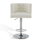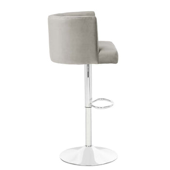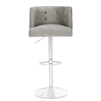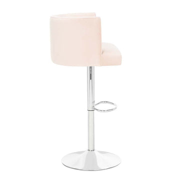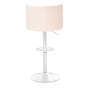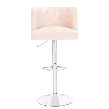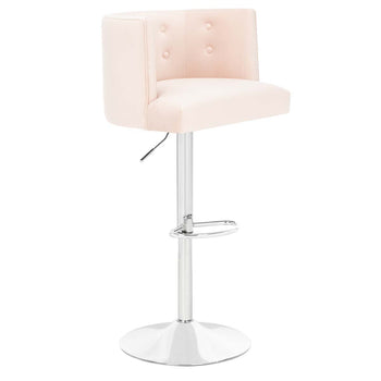 Elevate the style in any room with this adjustable bar stool. Perfect for entertaining, it's finely crafted with plush light pink velvet upholstery that's luxuriously tufted. Its silver finish and adjustable height make it a new design classic.