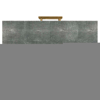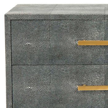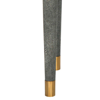 Inspired by the artistry of master cabinetmakers, the black Nour Shagreen End Table expertly balances the beauty of linear geometry and the craft of tactile composition. Its decadent capped brass legs and hardware make it a favorite of interior designers.