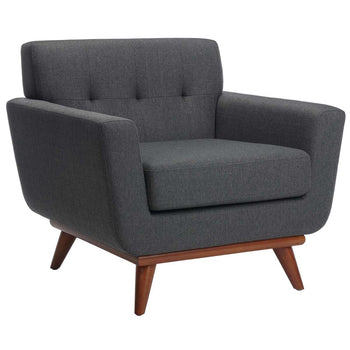 Your go to chair for curling up with a new best seller is also a handsome focal point in the corner of any room with the Mid Century styled Opal Arm Chair. Upholstered in tufted slate grey linen to complement its clean lines and handsome silhouette, Opal flaunts retro smart style atop shapely wooden legs.